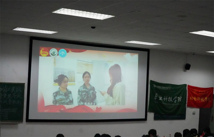 圖為現(xiàn)場播放校史館采訪視頻