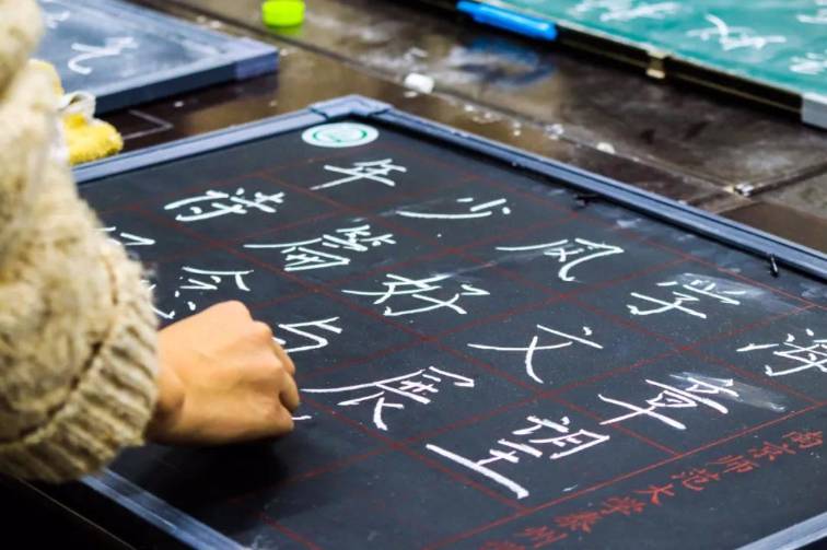 師范生書寫著自己的板書,筆端平穩(wěn)。