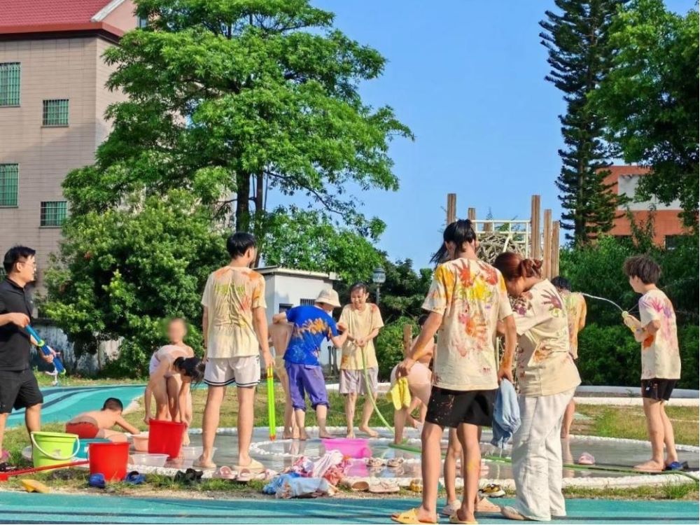 圖四 志愿者帶領(lǐng)寶貝清洗顏料