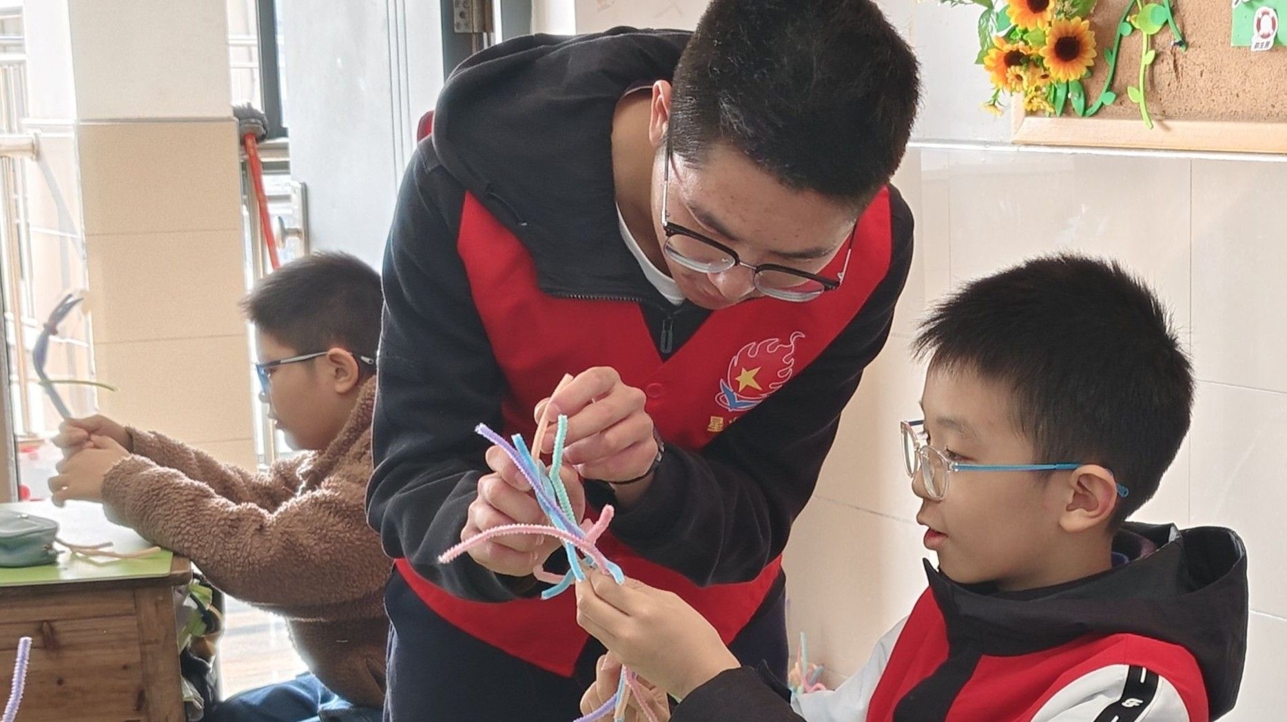 在船舶模型展示環(huán)節(jié),小朋友們展現(xiàn)出了對(duì)船舶的濃厚興趣,他們紛紛表示要親手制作一艘屬于自己的小船。隨后,胡益帶領(lǐng)小朋友們開(kāi)始了扭扭棒小船的制作,教室里充滿(mǎn)了歡聲笑語(yǔ)。盡管有成功也有失敗,但小朋友們并沒(méi)有氣餒,因?yàn)樗麄兿嘈,總有一天能夠親手駕馭真正的“玩具”。