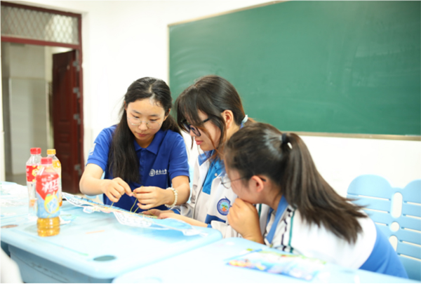 支教團成員精心設(shè)計課程目標,認真制訂教學計劃,悉心組織課堂教學,開設(shè)篆刻、藍曬、扎染、繩藝等13門多元化非物質(zhì)文化遺產(chǎn)課程,讓學生近距離感受傳統(tǒng)文化項目的魅力,豐富學生的校園生活,發(fā)展學生的興趣特長,促進學生全面發(fā)展,讓學生學有所樂、學有所獲,以期推進“五育并舉”和“五育融合”,賦能學生未來可持續(xù)發(fā)展。