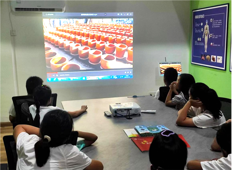 本次活動(dòng)的目標(biāo)群體是6至12歲的兒童,課程伊始,本團(tuán)隊(duì)講師為激發(fā)孩子們求知的熱情,調(diào)動(dòng)積極性,先通過講述青花瓷的起源、發(fā)展、制作工藝等方面知識(shí),讓孩子們初步了解中國傳統(tǒng)陶瓷藝術(shù)的發(fā)展歷程,增長知識(shí)儲(chǔ)備。