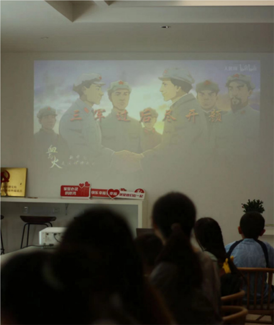 然后,實(shí)踐團(tuán)還開展了紅色觀影活動(dòng),一起回顧廣大烈士們的無私奉獻(xiàn)和遠(yuǎn)大抱負(fù),感受星星之火的燎原之勢(shì),讓紅色精神澆灌孩子們的成長。