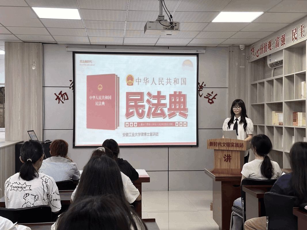 6月26日,安徽工業(yè)大學(xué)公共管理與法學(xué)院“律博士”普法宣講團聯(lián)合馬鞍山市楊家山社區(qū),為全面貫徹黨的二十大精神,深入學(xué)習(xí)宣傳習(xí)近平法治思想,增強社區(qū)群眾的法治意識,共同進行《民法典》普法宣講活動!睹穹ǖ洹肥切轮袊谝徊恳苑ǖ涿姆,在中國法律體系中居于核心地位,《民法典》共7編,1260條,涵蓋社會生活的方方面面,被譽為“公民生活的百科全書”。