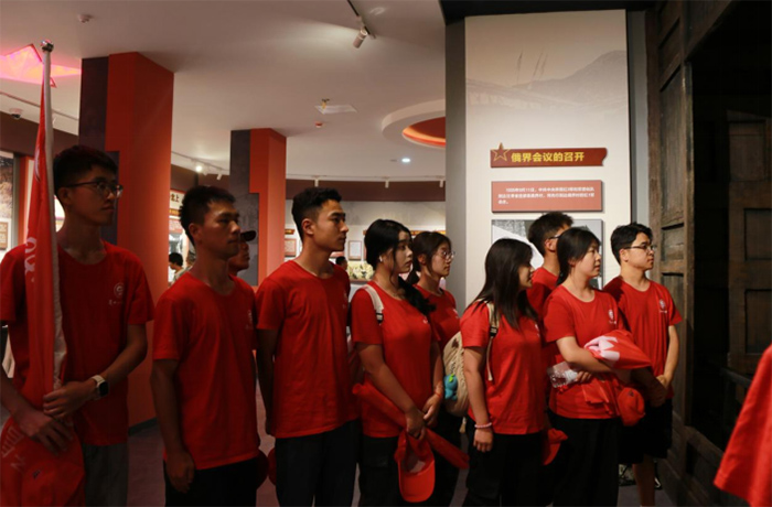 。▓D為實(shí)踐團(tuán)在臘子口紀(jì)念館參觀學(xué)習(xí)/陳娜攝)