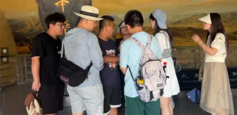 。▓D為施樂老師為實(shí)踐團(tuán)講解嘉峪關(guān)歷史文化/張倩倩 攝)