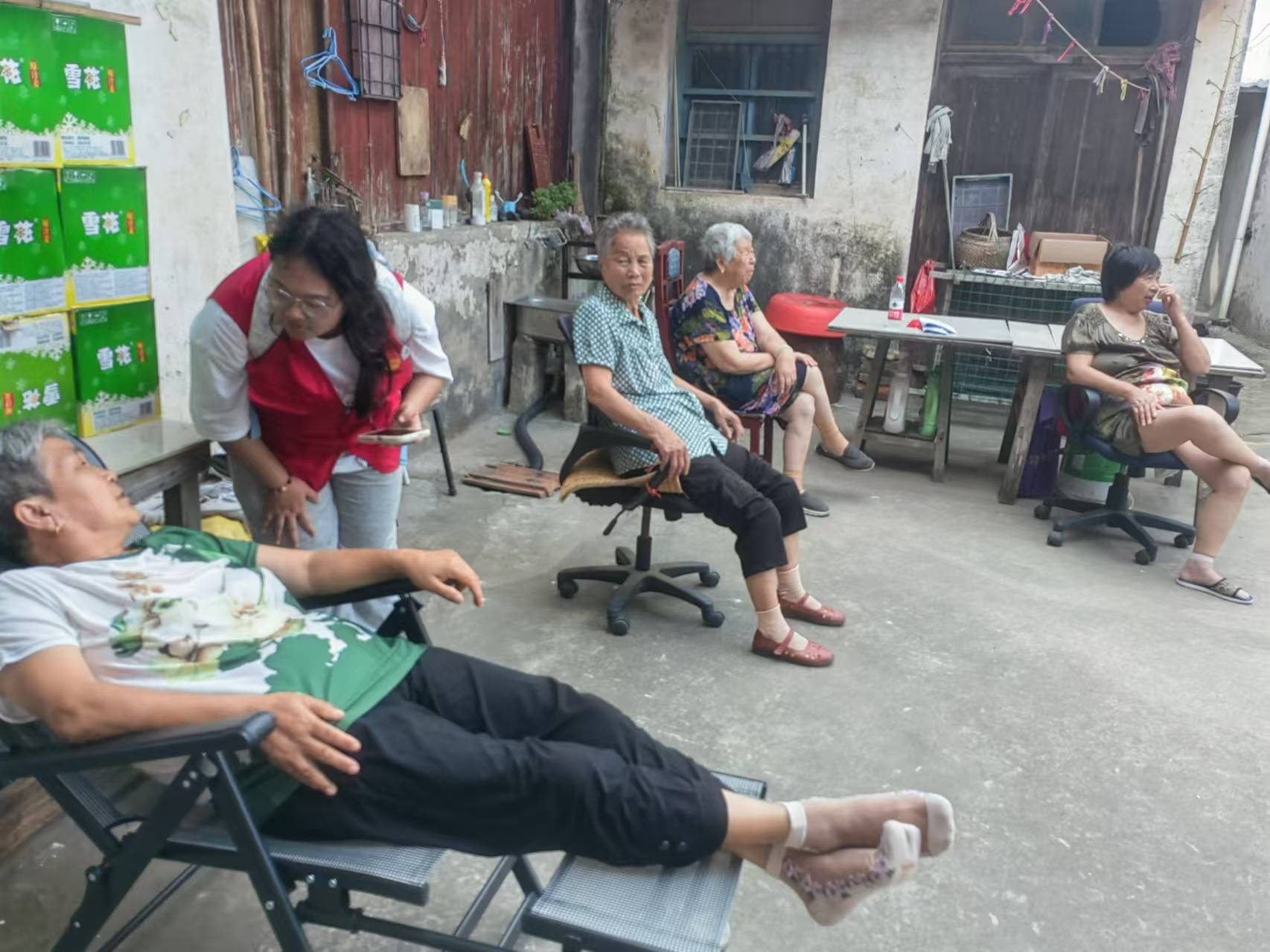 告別了老兵爺爺,筑巢小隊沿著一條條鄉(xiāng)村小道,我們走到了一個院落,許多老人們躺在搖椅上在這里聊天、休憩。奶奶們年齡普遍為70-80歲,問及是否使用智能手機時,她們都擺擺手,表示平時很少使用手機,只會用翻蓋老人機與常年在外的子女打電話,生活出行用現(xiàn)金支付。有時候老人們說話帶有口音,但海洋筑巢小隊始終保持耐心與細心與老人們溝通,追根溯源深入現(xiàn)狀。
