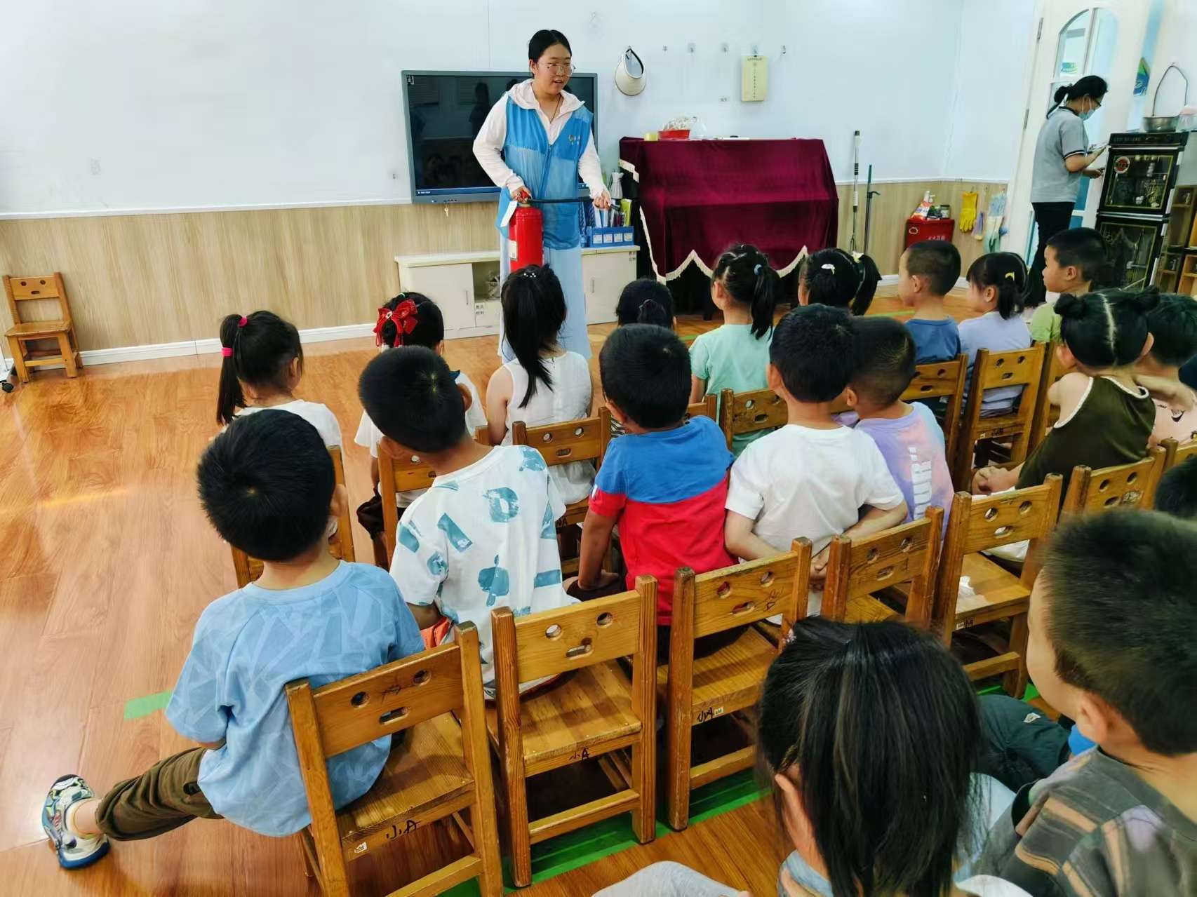 活動(dòng)伊始,團(tuán)隊(duì)成員為小朋友們播放了有關(guān)消防安全的動(dòng)畫短片,同時(shí)配合通俗易懂的理論講解于現(xiàn)場(chǎng)演練示范,“零距離”地向小朋友們?cè)敿?xì)介紹了火災(zāi)的成因、應(yīng)急自救的關(guān)鍵步驟、滅火器等消防器材的正確使用方法等消防知識(shí)。隨后團(tuán)隊(duì)成員帶領(lǐng)小朋友們進(jìn)行緊急疏散演練,隨著警報(bào)聲長(zhǎng)鳴、廣播聲響起,小朋友們捂住口鼻、低頭彎腰,在團(tuán)隊(duì)成員的指揮下按疏散逃生路線安全有序撤離至操場(chǎng)寬闊位置;顒(dòng)結(jié)束后,小朋友們紛紛表示此次活動(dòng)使他們受益匪淺,他們會(huì)將學(xué)到的消防知識(shí)牢記于心,在日常生活中遵守各項(xiàng)防火制度,創(chuàng)造良好安全的生活環(huán)境。