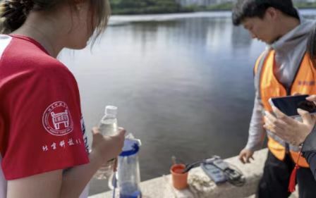 北京科技大學(xué)澧泉科技之閩源實(shí)踐團(tuán)在筼筜湖采水樣。王徐翰林 供圖