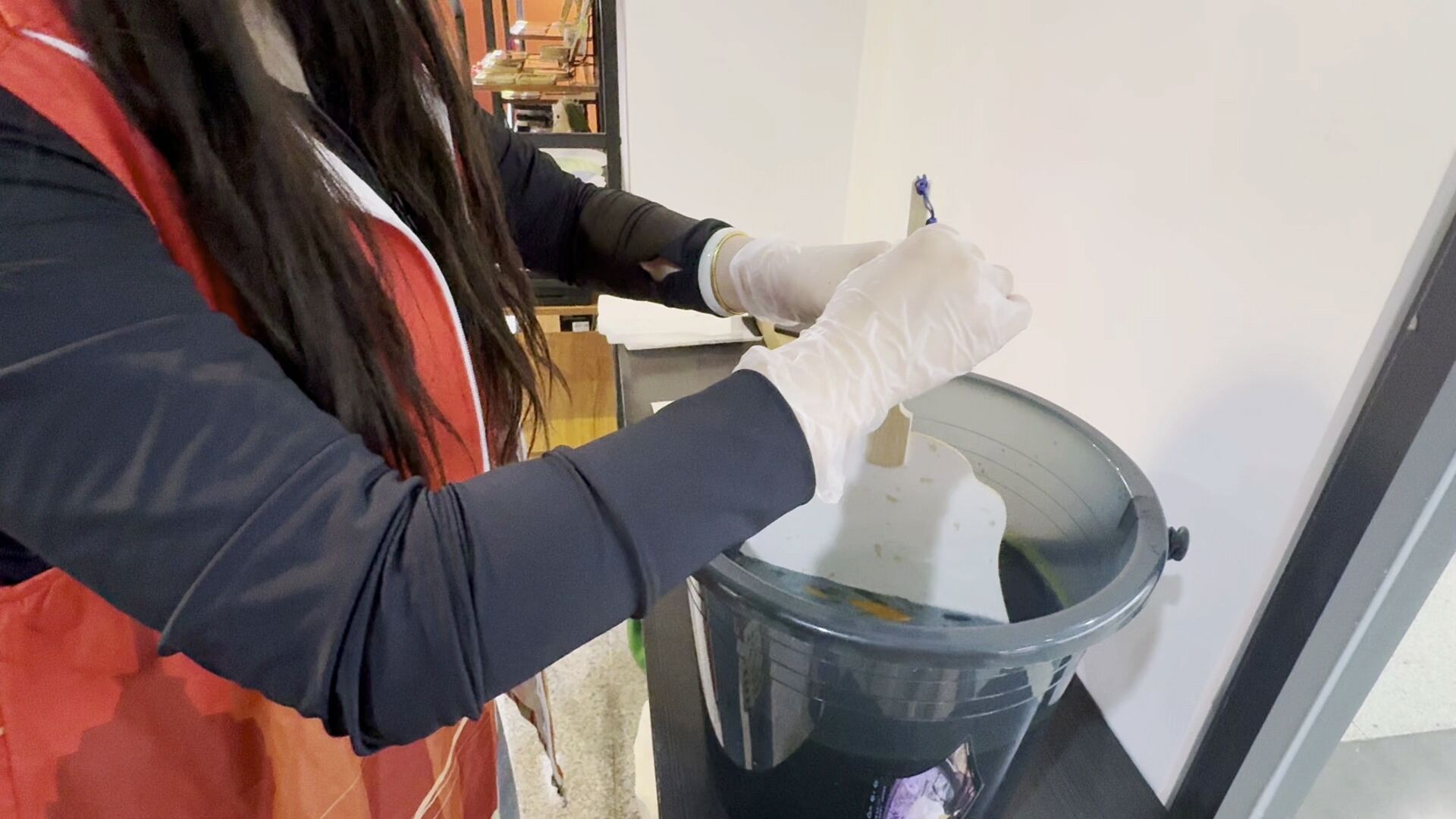 (圖為實踐隊員進行漆扇染色 實踐隊員 魏思竹 供圖)