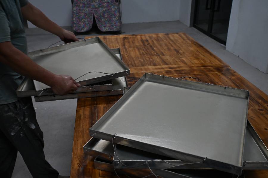 當(dāng)天實(shí)踐團(tuán)到達(dá)時(shí),張姐正忙著給苕粉固形。鐵鍋上架著模具,她一手穩(wěn)模、一手舀漿,手腕輕晃間,紅薯漿便均勻鋪滿模具。“張姐,這晃動(dòng)的力度有講究嗎?”有隊(duì)員忍不住提問(wèn)。“得勻著勁兒,不然粉皮厚薄不一,煮的時(shí)候就容易碎。”張姐笑著答,手上的活卻沒(méi)停,漿體剛凝固,便迅速放入沸水定型,轉(zhuǎn)身又開(kāi)始下一盤(pán)制作。待粉皮成形,一家人會(huì)細(xì)致地掛晾、風(fēng)干、切塊、裝箱,整套流程行云流水。