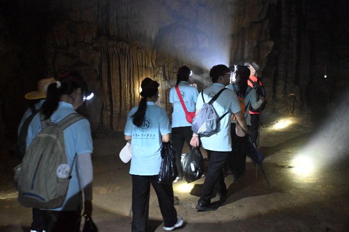 環(huán)線的核心亮點(diǎn)之一——“天心眼”溶洞,向?qū)嵺`團(tuán)揭開了喀斯特地貌的神秘面紗。鄭隊(duì)長耐心講解溶洞的地質(zhì)構(gòu)造與形成過程,隊(duì)員們認(rèn)真記錄下這些珍貴信息,深入地了解自然奇觀背后的科學(xué)奧秘。