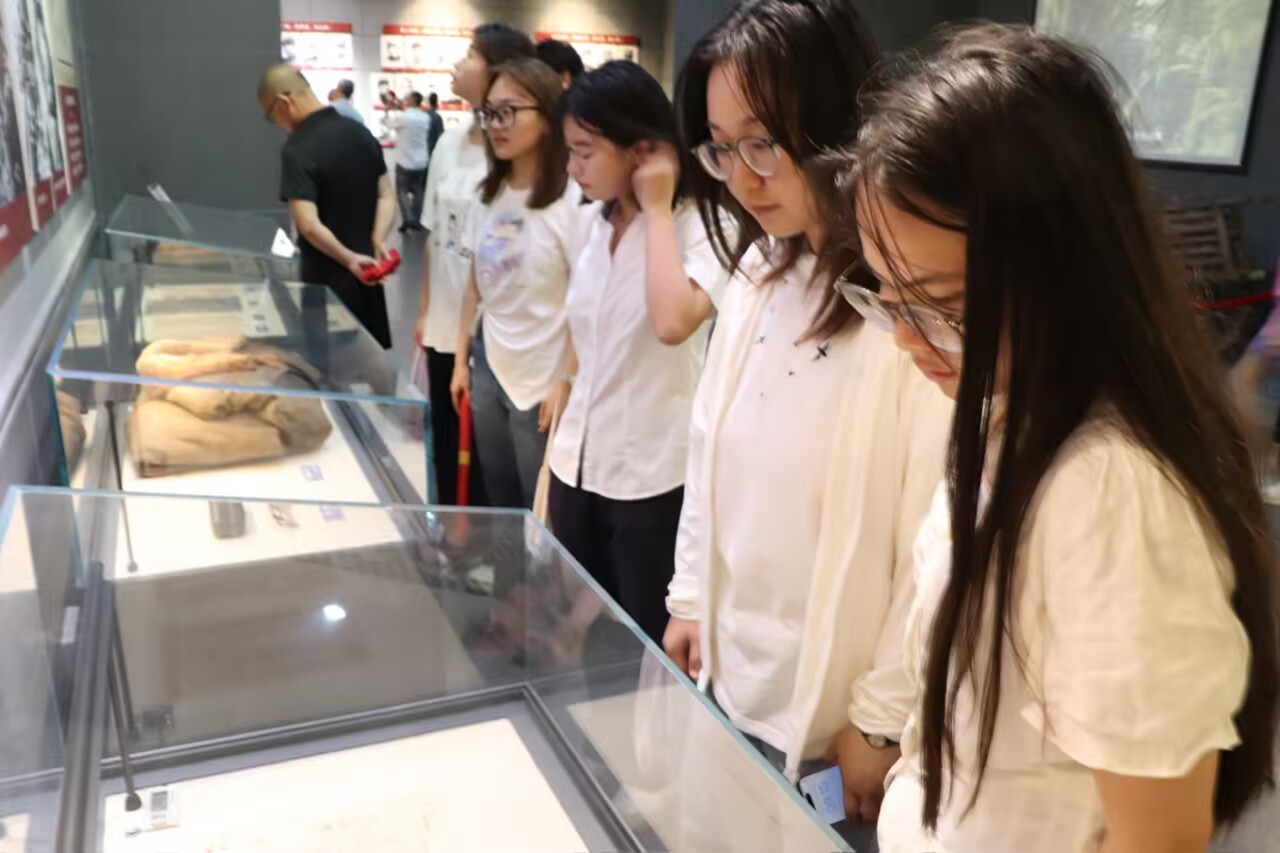 圖為實踐團隊成員參觀紀念館圖 劉舒供