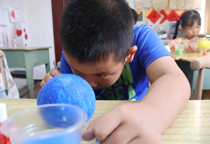 智“繪”科技夢,藝術(shù)韻情長。當(dāng)科技與藝術(shù)碰撞,原本潔白無瑕的月球燈就變成了憨態(tài)可掬的笑臉、綺旖絢爛的晚霞、藍(lán)綠相間的地球。“我的燈上面為什么有一塊凹陷的地方呢?”面對學(xué)生的真摯發(fā)問,志愿者李佳藝回答道:“因?yàn)殡E石撞擊月球形成了很多隕石坑,這對月球來說是無法修復(fù)的。”從探月到探心,這場奇妙之旅的魅力遠(yuǎn)不止于此。