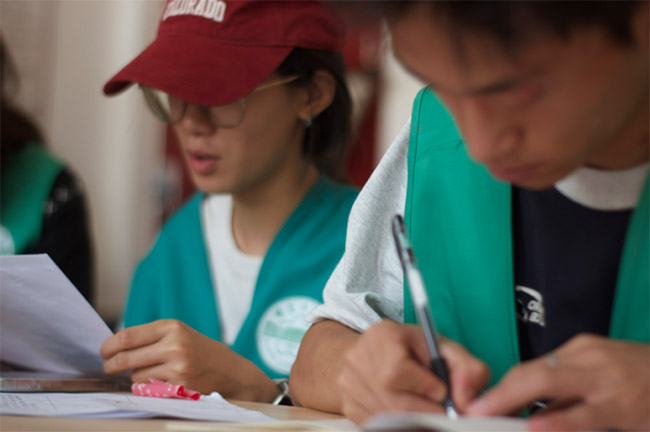 隊(duì)員們圍坐在一起,整理調(diào)研數(shù)據(jù)并討論助農(nóng)方案。