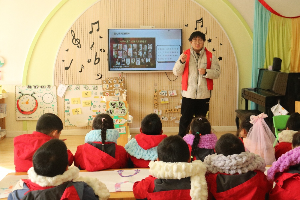 1月11日,南通理工學院的學子志愿者們走進金色陽光幼兒園,開展趣味互動課堂。志愿者手把手指導小朋友繪制“夢想圍巾”,五彩線條盡顯童真想象;隨后為孩子們系上嶄新圍巾,暖意包裹童心。開展兩個課堂,一是”毛線科普課“,二是“兩彈一星”科普小課堂,志愿者借助動畫與通俗講解,講述鄧稼先、錢學森等先輩攻堅克難的故事,將愛國報國的種子播撒在孩子們心間。