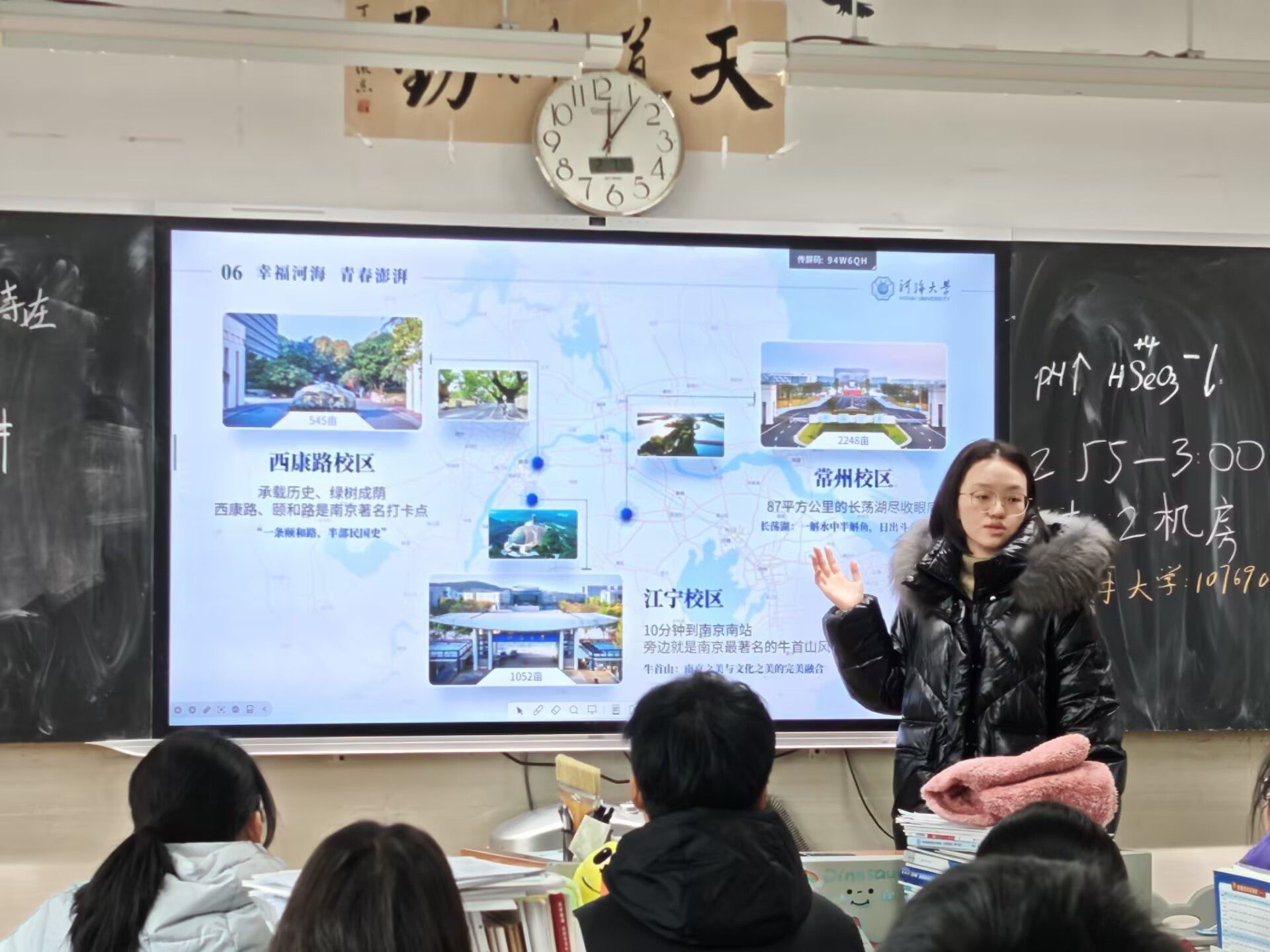 隨后,在各班師生的期待中,宣講團(tuán)成員分組走進(jìn)班級(jí),以面對(duì)面交流的方式,與學(xué)弟學(xué)妹們開啟深度分享。他們結(jié)合自身專業(yè),詳細(xì)介紹了河海大學(xué)的優(yōu)勢(shì)專業(yè)、學(xué)科特色及就業(yè)前景,展示了學(xué)校在科研創(chuàng)新領(lǐng)域取得的豐碩成果,分享了河海學(xué)子在各類學(xué)科競(jìng)賽、社會(huì)實(shí)踐中的優(yōu)異表現(xiàn),用真實(shí)案例激勵(lì)學(xué)弟學(xué)妹們勇于拼搏、不負(fù)韶華。