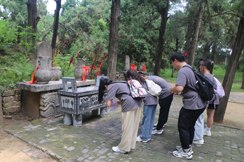 東坡碑林,一塊塊碑刻猶如歷史的豐碑,銘刻著蘇東坡的傳世經(jīng)典。當(dāng)代著名書法家們用靈動的筆觸,賦予了這些作品新的生命與靈魂,讓學(xué)子們沉醉于書法藝術(shù)與文學(xué)魅力的交織之中。而在三蘇陵園,實踐團(tuán)成員懷著無比崇敬的心情,在墓前默默肅立。他們深知,三蘇父子不僅是文學(xué)的巨匠,更是中華民族智慧與精神的象征。