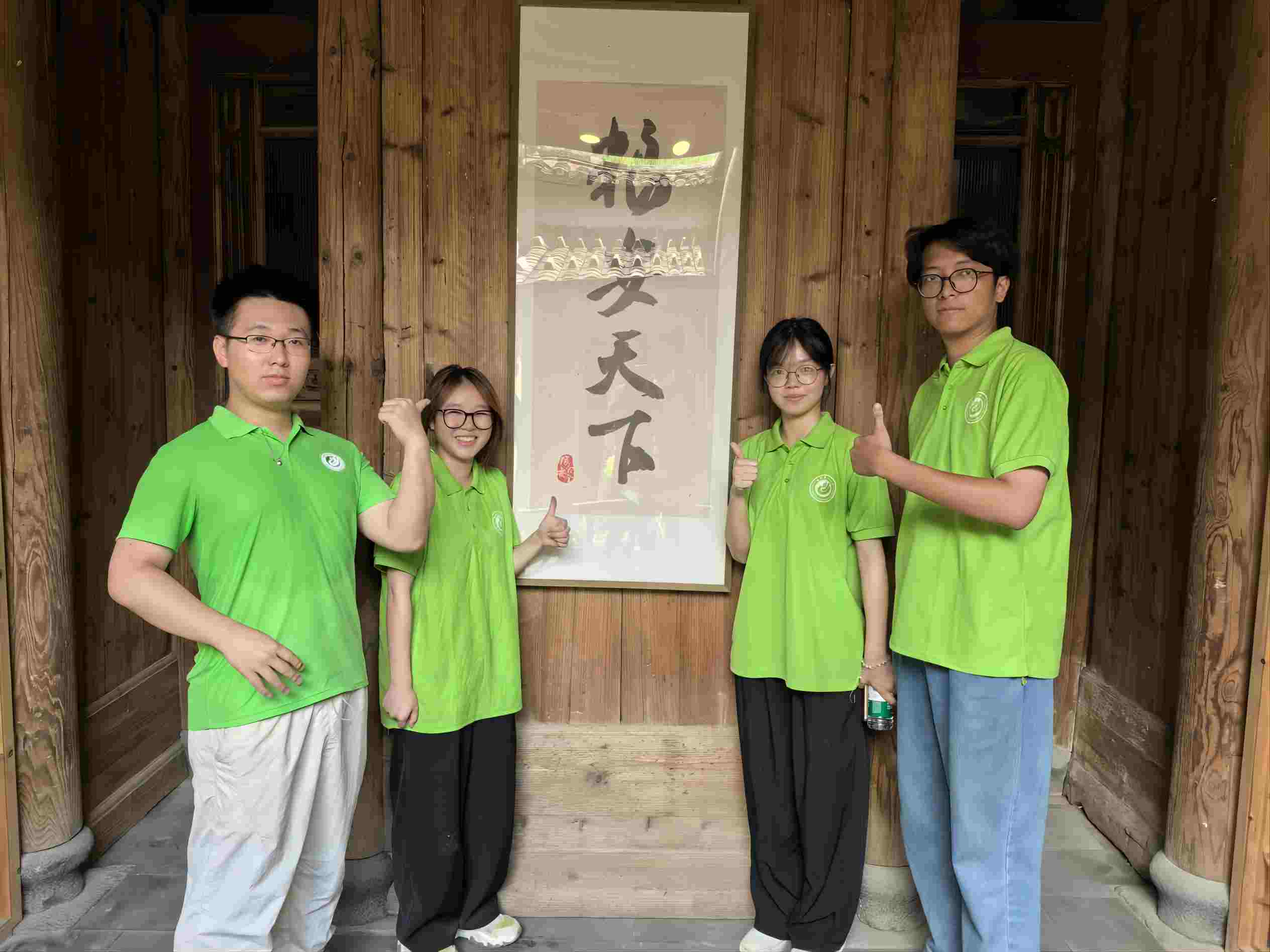 圖為福農大學子在“糧安天下”書法前合影。通訊員 王培杰 供圖