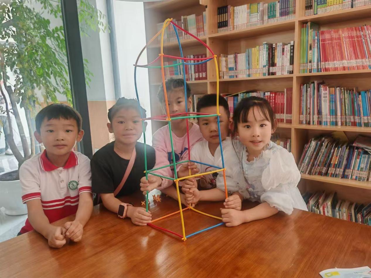 制作過(guò)程充滿挑戰(zhàn),為解決結(jié)構(gòu)穩(wěn)定性問(wèn)題,學(xué)生們自覺(jué)分工合作,創(chuàng)新性探索方案,有的將吸管擰成波浪形等多樣形狀,有的將剪切后的吸管靈活拼接,有的使用膠水進(jìn)行二次加固,形成了各式各樣的“建筑成果”?粗约汉托』锇楹献鞔罱ǖ淖髌,小朋友們的眼睛里閃爍著耀眼的光芒。