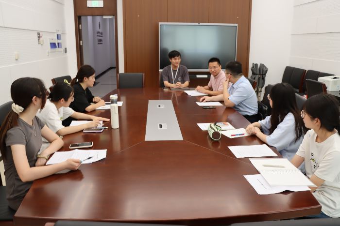 圖為團(tuán)隊(duì)與江蘇省海外發(fā)展協(xié)會(huì)秘書(shū)長(zhǎng)佘昊明開(kāi)展訪談