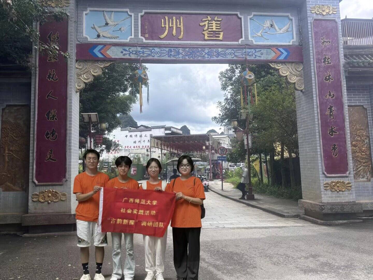 為響應黨的二十大“物質文明和精神文明相協(xié)調”的中國式現(xiàn)代化發(fā)展要求,2025年7月14日至16日,我們廣西師范大學“古韻新探”實踐團隊前往廣西百色市靖西舊州古鎮(zhèn),圍繞“探民俗文旅、促文明共融”開展了為期3天的社會實踐調研。期間,我們走訪了當?shù)氐牟┪镳^、古戲臺、風情街、歷史遺址等地方,通過和非遺傳承人交流、觀察民俗場景,挖掘壯族文化的當代價值,希望能為邊疆文旅融合出一份力。