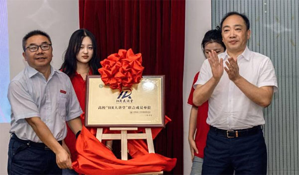葉文忠與湖南人才市場有限公司總經(jīng)理、湖南省人力資源服務(wù)協(xié)會(huì)秘書長雷明偉共同為湖南科技大學(xué)商學(xué)院“HR大講堂”揭牌,潘愛民為8位首批人力資源企業(yè)講師頒發(fā)聘書。