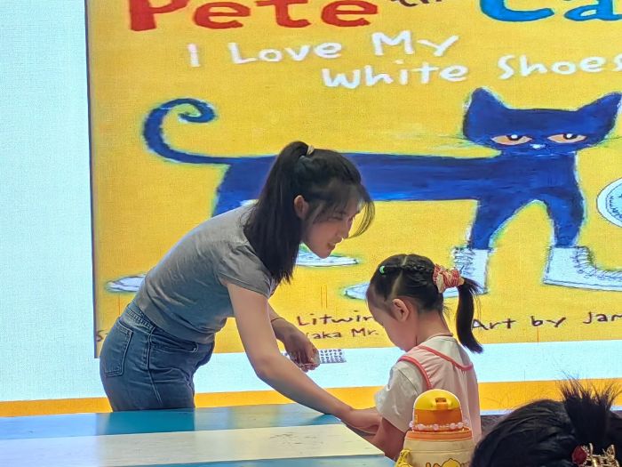 走進(jìn)蘇州圖書(shū)館北館少兒區(qū),淺藍(lán)色的主調(diào)營(yíng)造出寧?kù)o又活潑的氛圍:書(shū)架上整齊排列著色彩斑斕的英語(yǔ)繪本與立體書(shū),陽(yáng)光透過(guò)落地窗,在鋪著軟墊的閱讀角投下斑駁光影。為了讓活動(dòng)更貼合少兒心理,團(tuán)隊(duì)提前與圖書(shū)館工作人員反復(fù)確認(rèn)場(chǎng)地布置細(xì)節(jié),從繪本的篩選到互動(dòng)環(huán)節(jié)的設(shè)計(jì),都經(jīng)過(guò)了多輪打磨。跨專業(yè)的協(xié)作,讓活動(dòng)方案既保留了英語(yǔ)學(xué)習(xí)的專業(yè)性,又充滿了符合少兒認(rèn)知特點(diǎn)的創(chuàng)意,為后續(xù)實(shí)踐打下了扎實(shí)基礎(chǔ)。