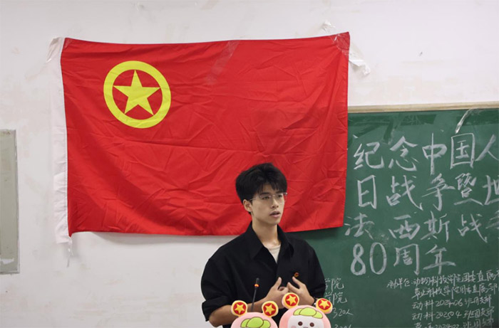 為了深入貫徹學(xué)習(xí)習(xí)近平總書記關(guān)于銘記歷史、珍愛和平、開創(chuàng)未來的重要講話精神,進(jìn)一步引導(dǎo)團(tuán)員青年傳承紅色基因、厚植家國情懷,10月11日,四川農(nóng)業(yè)大學(xué)草業(yè)科技學(xué)院團(tuán)委直屬部門流動團(tuán)支部聯(lián)合動物科技學(xué)院團(tuán)委直屬部門流動團(tuán)支部及四個小班團(tuán)支部,在成都校區(qū)4-A202教室共同舉辦了“紀(jì)念中國人民抗日戰(zhàn)爭暨世界反法西斯戰(zhàn)爭勝利80周年”主題示范性班團(tuán)活動;顒油瑫r面向25級新生,通過邀請草院全體大一新生到場共同學(xué)習(xí)來深化本次活動引領(lǐng)學(xué)習(xí)效果并擴(kuò)大影響力。