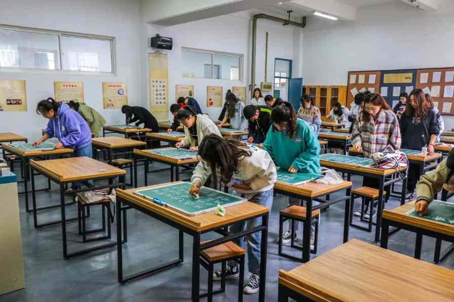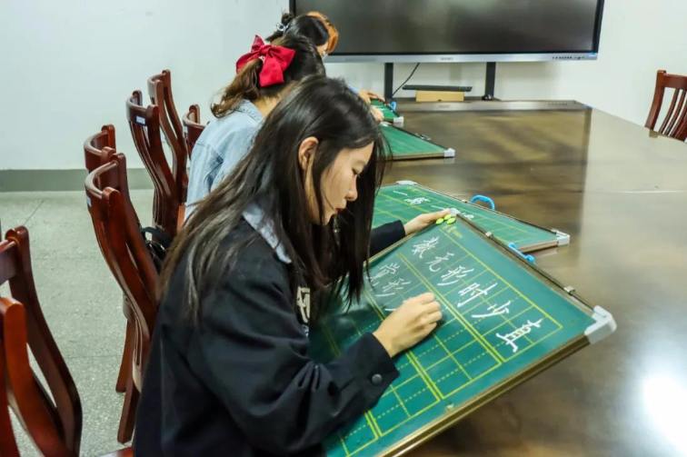 師范生書寫著自己的板書,筆端平穩(wěn)。