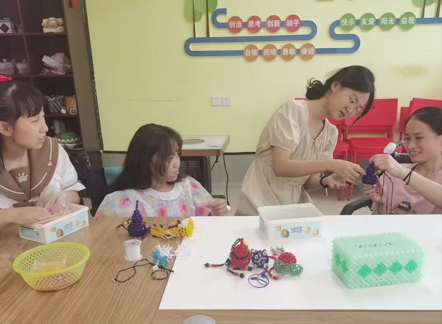 在與福利院的孩子們相處期間實踐團成員既是學生們的老師,也是弟弟妹妹的好哥哥、好姐姐。在這趟旅途開始之前,實踐團事先事先與福利院取得了聯(lián)系,獲得了福利院的支持,取得了對學生們的最初的了解,實踐團的成員事先在網(wǎng)上查詢了一些與福利院孩子們患有相同問題的孩子的生活,學習該如何與孩子們相處。在經(jīng)過最初忙碌的準備,實踐團成員按照預(yù)定計劃到達了福利院,福利院的孩子們卻是給了成員們驚喜:抵達福利院不久,孩子們就偷偷帶著水來到了我們這里。這讓成員們認識到他們是很有愛的,愛人之人是富足之人,孩子們有著超出預(yù)期的幸福感,或許在此之前他們已經(jīng)獲得過無數(shù)的社會溫暖了吧。在教學期間,他們也展示出來了出乎意料的學習能力,他們接受信息的速度相比于身體無恙的人也是毫無遜色,原定的課程孩子們總能早些完成,高質(zhì)量的完成。多些的時間,成員們也不愿閑著,與孩子們嘮嘮,對孩子們多謝了解,完完全全的融入他們的生活。向分享我們的一些生活,告訴孩子們世界很美好。與他們分享一些勵志的殘疾人故事,又讓人驚訝的是:孩子們了解很多很多類似的故事,甚至一些很少見的,如張海迪、尼克·胡哲、李志華等。孩子們知道他們比常人少些優(yōu)勢,所以孩子們更加相信努力能夠改變命運,世界對他們不公,卻使他們在努力的這一條路上比誰都走的更加堅定。