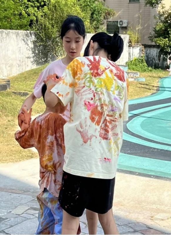 繪畫(huà)藝術(shù)治療是以繪畫(huà)藝術(shù)活動(dòng)為手段,對(duì)身心障礙者進(jìn)行輔助性治療的方法,幫助孤獨(dú)癥兒童穩(wěn)定情緒、抒發(fā)情感,改善認(rèn)知能力,建立社會(huì)意識(shí)和社會(huì)適應(yīng)性。2024年7月21日,“半夏鹿鳴”志愿服務(wù)隊(duì)與星星的孩子們共同進(jìn)行了一場(chǎng)“身體繪畫(huà)”——腳踩畫(huà)和手指畫(huà)。志愿者引導(dǎo)孩子們雙手雙腳沾上多彩顏料,在畫(huà)布上隨心繪制圖案。