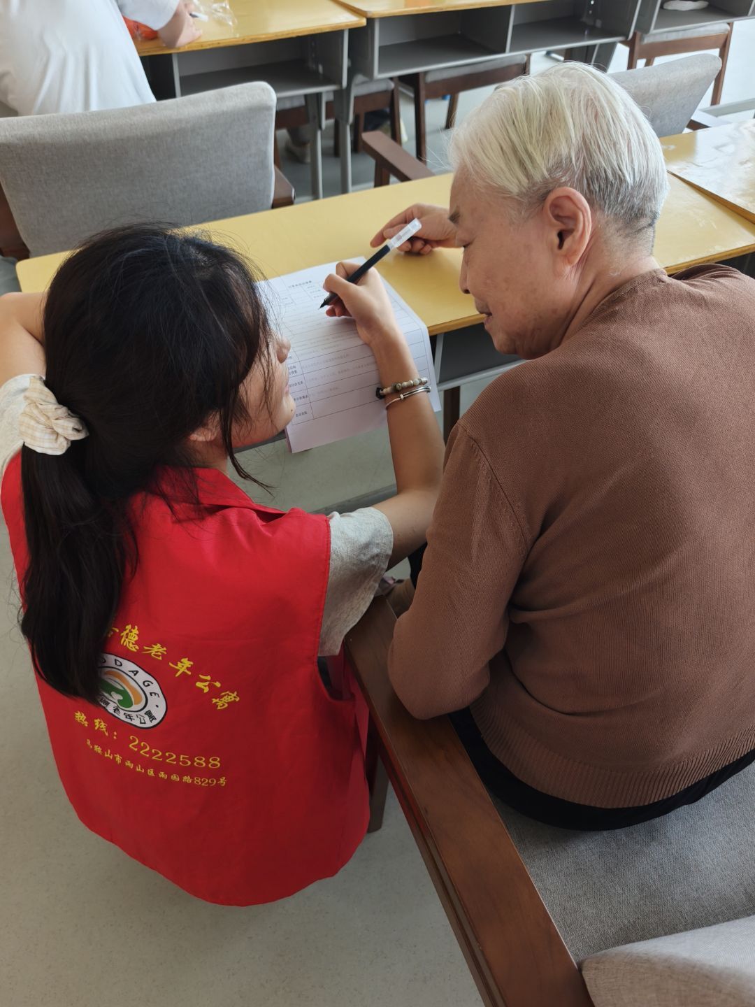 圖為志愿者對老人展開問卷調(diào)查。阿詩怡 供圖