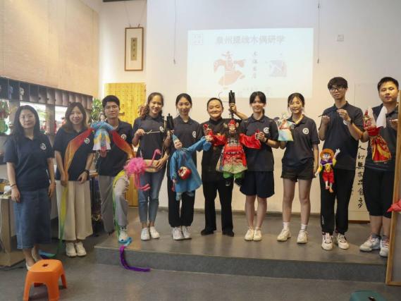 體驗(yàn)泉州美食后,實(shí)踐團(tuán)隊(duì)馬不停蹄地來到了鯉城區(qū)通政巷的木偶書店,和當(dāng)?shù)芈每鸵黄饍A聽店長康凱對于木偶戲文化的講解,欣賞李煜奇的經(jīng)典木偶戲曲目《鐘馗醉酒》和《小沙彌》演出。在場的觀眾無不被鐘馗醉酒后依然不變的威嚴(yán)、小沙彌因?qū)W術(shù)不精遭遇事件后的窘態(tài)所震驚,也體會到李老師以實(shí)際行動踐行了他的話語:“就算木偶本身是哭臉,我們也要讓觀眾們感受到它正在大笑。”