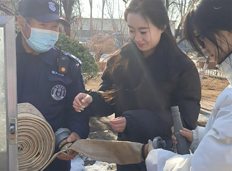 (圖為實踐團(tuán)成員同保安人員檢查安全隱患)