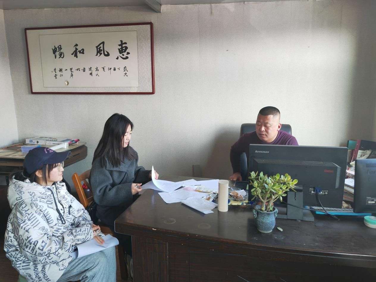 圖2 圖為團(tuán)隊(duì)成員在煙臺市棲霞鄉(xiāng)鎮(zhèn)企業(yè)劉老板進(jìn)行采訪交談