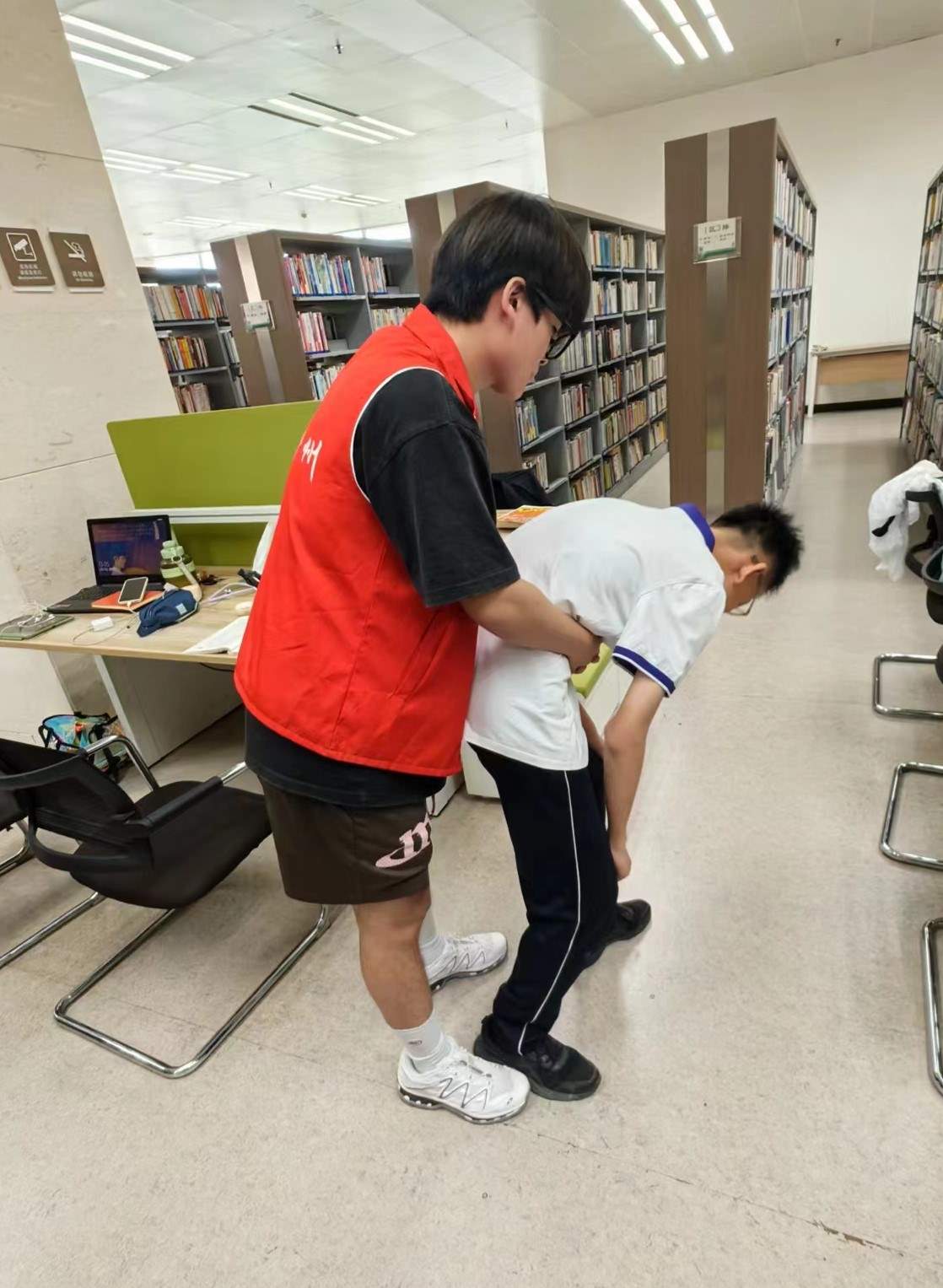 6月 28 日至7月4日,在隊長的帶領下,我組第一小隊前往鄭州市圖書館進行志愿服務工作和急救知識宣傳工作。隊員們按照圖書館要求規(guī)整分類書籍,協(xié)助工作人員維持秩序,分工明確、積極配合,迅速高效地完成工作,使圖書館的書籍干凈整齊、擺放正確。期間,他們還為讀者普及急救知識,詳細介紹心肺復蘇、海姆立克急救法等基本急救知識,進行實地演示和相互急救演練,并發(fā)放急救知識宣傳單,讓讀者對急救的作用和意義有了更深認識,了解更多急救知識以應對緊急情況,充分體現(xiàn)了我校同學做事認真、從不懈怠的品質。