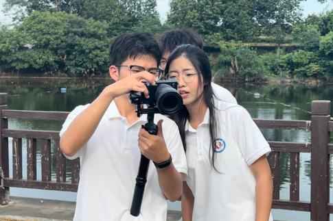 圖為實(shí)踐團(tuán)成員為金井拍攝茶旅融合宣傳片