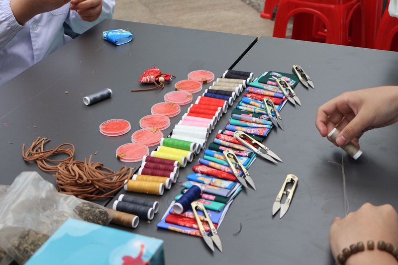 《嗅知覺及其與情緒系統(tǒng)的交互》一文表明:“氣味天然帶有情緒效價,不管是在意識上還是意識下層面,非社會性和社會性嗅覺信息都能對情緒產(chǎn)生影響,反之情緒也能對嗅知覺產(chǎn)生作用。”基于此,我們設(shè)計了“手作香囊”小攤。