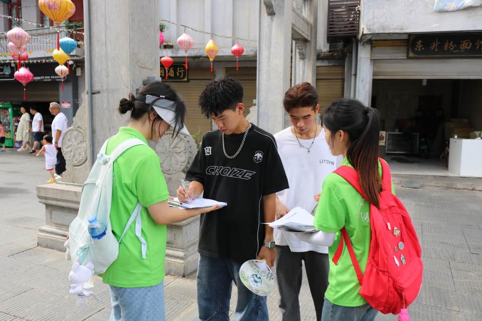 (團隊成員調(diào)研當?shù)鼐用瘢?/div> “黔陽古城不僅是歷史的見證,更是文化的傳承。”團隊經(jīng)過調(diào)研,提出了一系列創(chuàng)新性的構想,包括利用VR技術打造古城沉浸式體驗項目,讓游客身臨其境地感受古城的歷史變遷;開發(fā)數(shù)字化導覽系統(tǒng),為游客提供個性化、便捷化的游覽服務;以及通過社交媒體平臺,推廣古城的獨特魅力和文化內(nèi)涵,吸引更多年輕人關注和參與。