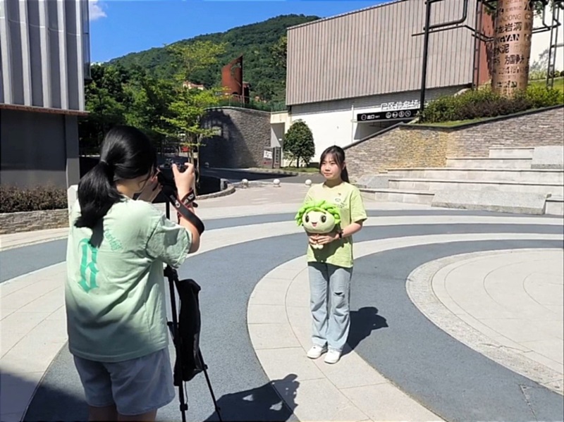 圖2為實(shí)踐隊(duì)成員錄制英文解說視頻的工作照參觀結(jié)束后,實(shí)踐隊(duì)隊(duì)員充分發(fā)揮英語專業(yè)優(yōu)勢(shì),精心制作了一系列高質(zhì)量的英文宣傳視頻。視頻中,隊(duì)員們巧妙地融合了詳實(shí)的歷史資料與生動(dòng)的現(xiàn)場(chǎng)敘述,用流暢而富有感染力的英語介紹了龍巖洞的工業(yè)歷史背景及在生態(tài)文明建設(shè)中的轉(zhuǎn)變與成就。此外,實(shí)踐隊(duì)隊(duì)員們還在龍巖洞公園周邊地區(qū)進(jìn)行了廣泛的入戶宣傳活動(dòng),通過發(fā)放宣傳手冊(cè)、志愿服務(wù)等形式,讓更多龍巖市民關(guān)注龍巖洞的保護(hù)與開發(fā)工作。