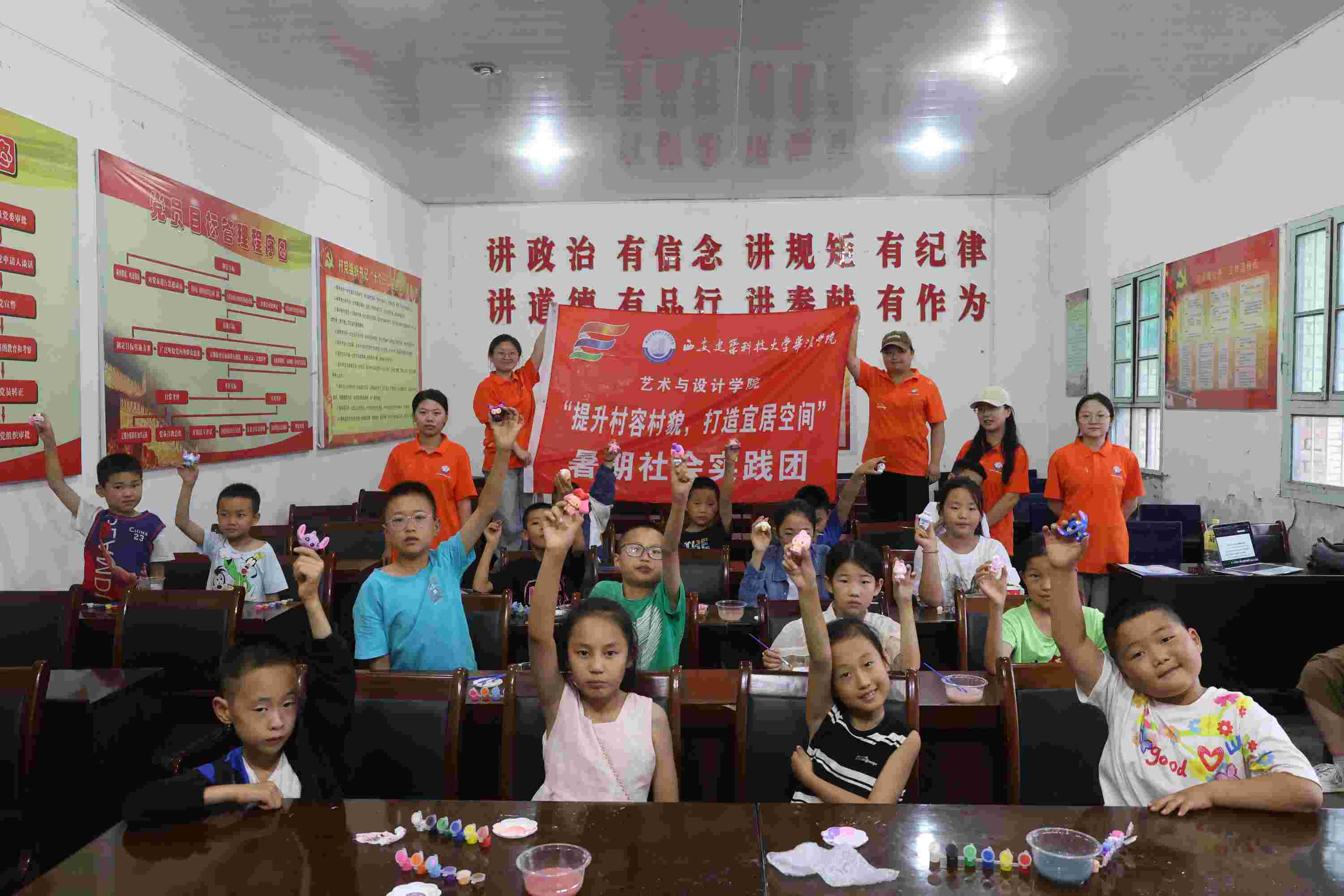針對(duì)當(dāng)?shù)亓羰貎和,?shí)踐團(tuán)開(kāi)設(shè)了豐富多彩的藝術(shù)支教課程,包括“我眼中的夏天”、“美麗的房子”繪畫(huà)以及石膏涂色等,激發(fā)了孩子們對(duì)藝術(shù)的興趣與創(chuàng)造力。孩子們的作品被精心挑選并張貼在鄉(xiāng)村墻面上,成為鄉(xiāng)村一道亮麗的風(fēng)景線,同時(shí)也為孩子們搭建了展示自我、實(shí)現(xiàn)夢(mèng)想的舞臺(tái)。