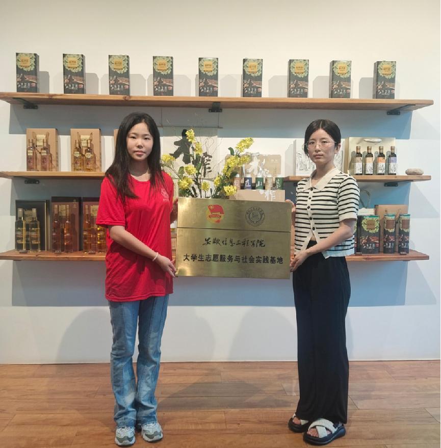 (圖為實踐團代表與益然香木榨文化產(chǎn)業(yè)園負責人共揭牌匾)