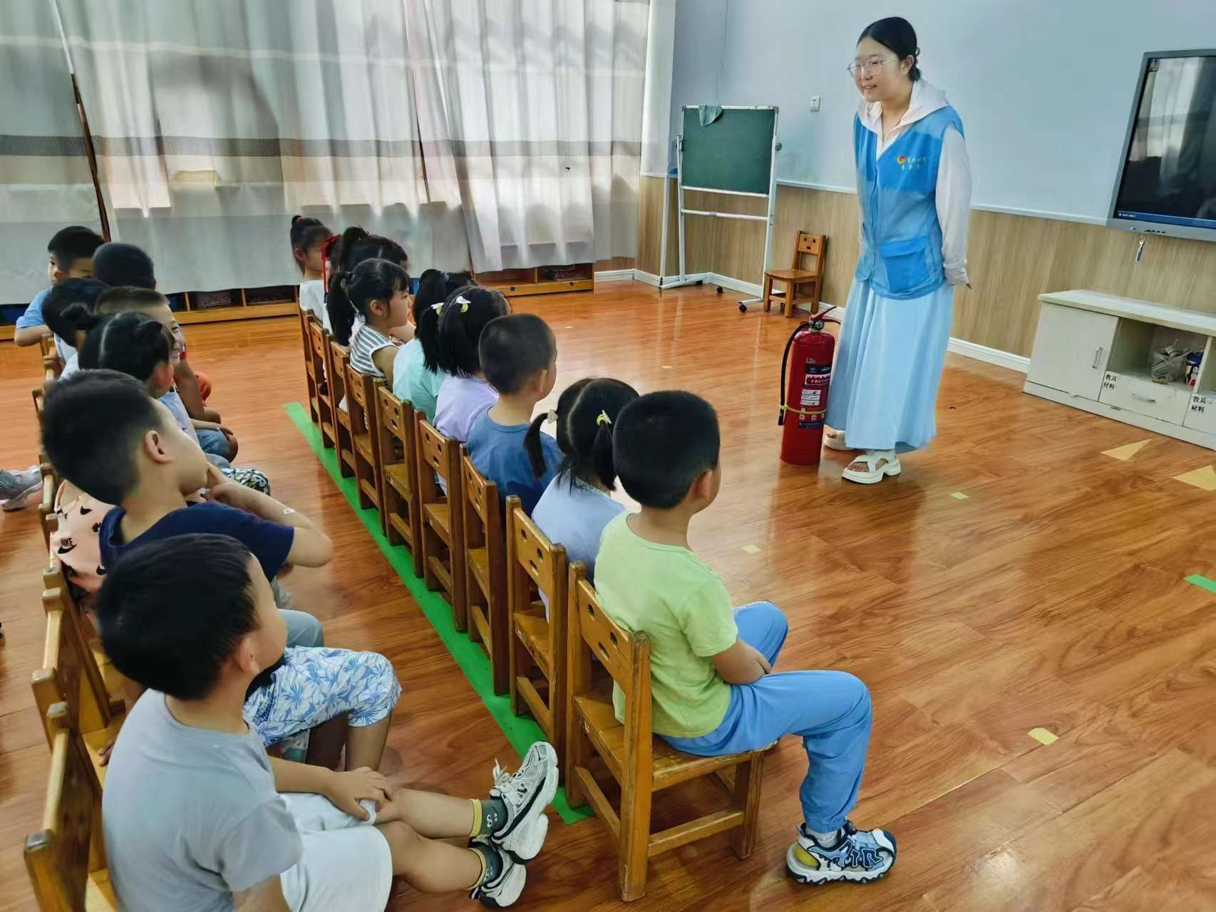 活動(dòng)伊始,團(tuán)隊(duì)成員為小朋友們播放了有關(guān)消防安全的動(dòng)畫短片,同時(shí)配合通俗易懂的理論講解于現(xiàn)場(chǎng)演練示范,“零距離”地向小朋友們?cè)敿?xì)介紹了火災(zāi)的成因、應(yīng)急自救的關(guān)鍵步驟、滅火器等消防器材的正確使用方法等消防知識(shí)。隨后團(tuán)隊(duì)成員帶領(lǐng)小朋友們進(jìn)行緊急疏散演練,隨著警報(bào)聲長(zhǎng)鳴、廣播聲響起,小朋友們捂住口鼻、低頭彎腰,在團(tuán)隊(duì)成員的指揮下按疏散逃生路線安全有序撤離至操場(chǎng)寬闊位置;顒(dòng)結(jié)束后,小朋友們紛紛表示此次活動(dòng)使他們受益匪淺,他們會(huì)將學(xué)到的消防知識(shí)牢記于心,在日常生活中遵守各項(xiàng)防火制度,創(chuàng)造良好安全的生活環(huán)境。