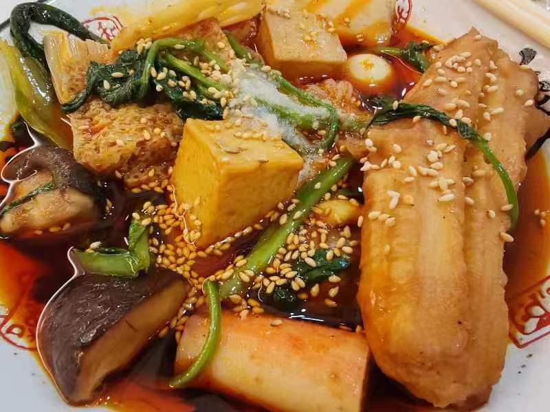 實踐隊員白陽首先來到遠(yuǎn)英麻辣燙,對店主楊師傅進(jìn)行采訪。楊師傅首先分享了天水麻辣燙成功的秘訣。楊師傅表示這里的麻辣燙價格親民,口味偏麻,且加入了當(dāng)?shù)靥厣使壤苯贰⒂蜐娎弊拥日{(diào)味料,構(gòu)成了當(dāng)?shù)靥厥獾目谖短厣。在被問到麻辣燙如何保證品質(zhì)和衛(wèi)生標(biāo)準(zhǔn)時,楊師傅表示,他每天早上第一時間采購新鮮蔬菜,反復(fù)清洗、切串,并表示食品安全是做餐飲行業(yè)的第一要義。那么天水麻辣燙相較其他地方有什么優(yōu)勢呢?楊師傅表示天水麻辣燙依靠特色手搟粉、洋芋丸子等當(dāng)?shù)靥厣巢,以及甘谷辣椒的特有風(fēng)味而出眾,抓住游客的味蕾。