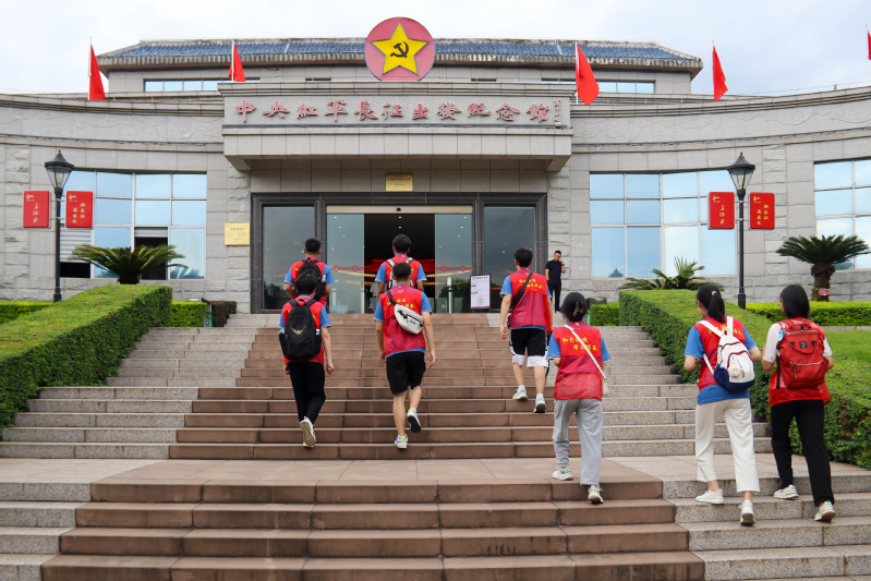 實(shí)踐隊(duì)還前往中央紅軍長(zhǎng)征出發(fā)地——于都。首先參觀了長(zhǎng)征出發(fā)紀(jì)念館,實(shí)踐隊(duì)隊(duì)員們?cè)敿?xì)了解長(zhǎng)征的起因、經(jīng)過(guò)和偉大意義,深刻理解長(zhǎng)征精神的內(nèi)涵——堅(jiān)定的理想信念、不怕?tīng)奚母锩、?dú)立自主的創(chuàng)新膽略以及顧全大局、嚴(yán)守紀(jì)律的高尚品德。移步至紅軍渡河遺址,面對(duì)滔滔河水,隊(duì)員們仿佛看到了當(dāng)年紅軍戰(zhàn)士們不畏艱險(xiǎn)、勇往直前的身影。懷著對(duì)先烈的敬意,實(shí)踐隊(duì)來(lái)到革命英雄紀(jì)念館,館內(nèi)陳列著長(zhǎng)征前夕英勇?tīng)奚牧沂總兊挠⒂率论E和遺物,每一件展品都仿佛在訴說(shuō)著那段崢嶸歲月中的悲壯與輝煌。隊(duì)員們被這份深沉的愛(ài)國(guó)情懷和堅(jiān)定的革命信念深深打動(dòng),更加堅(jiān)定了自己的信仰與追求。