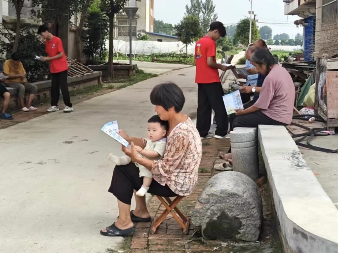 圖為實(shí)踐隊(duì)為老人宣傳防溺水。李景瑞供圖