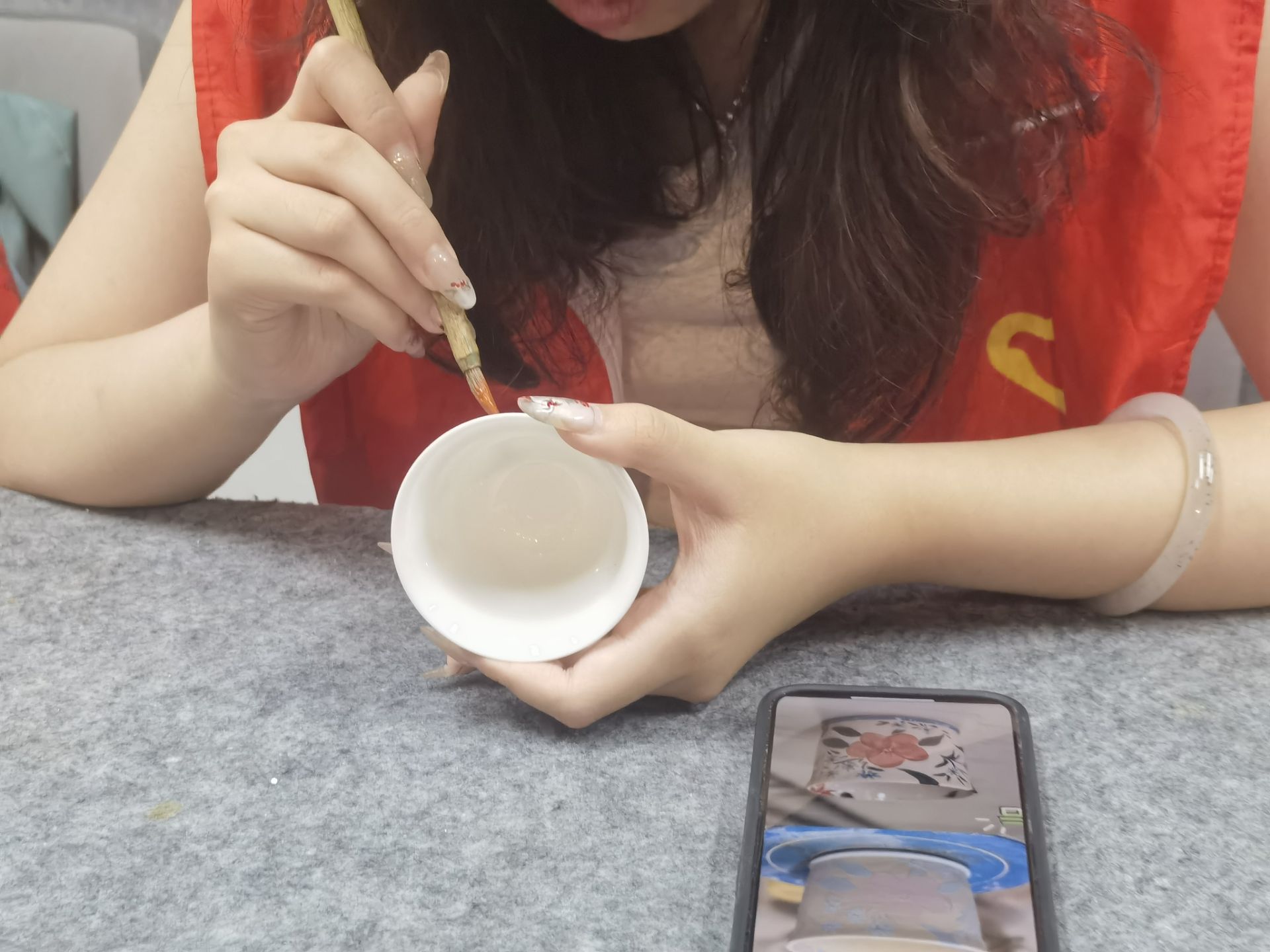 (圖為實踐隊員繪制陶瓷釉上彩 實踐隊員:魏思竹 供圖)