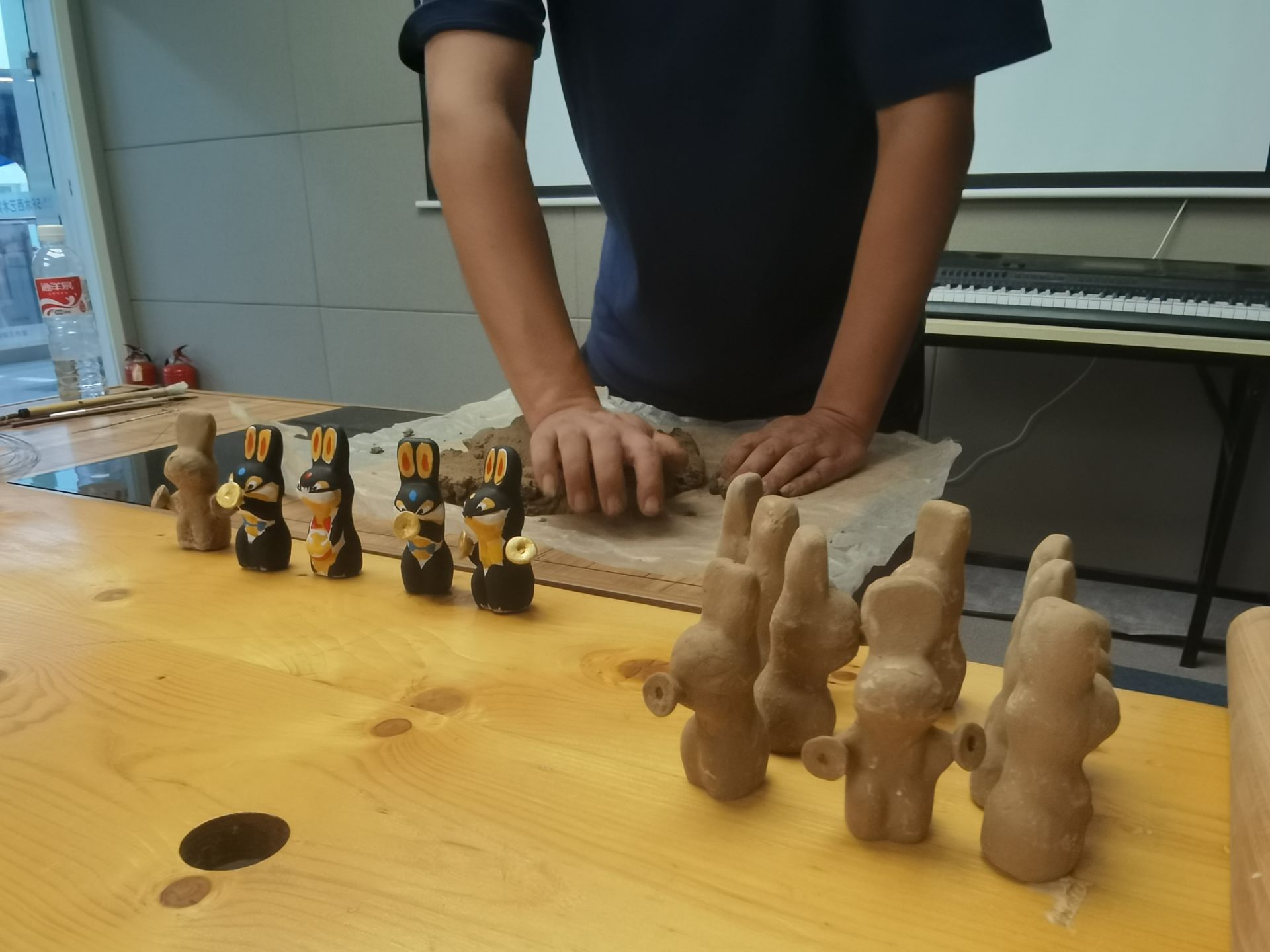 首先,實踐隊員們來到了泥塑吳宏軍老師的工作室。吳宏軍老師作品多次參加國內外展覽并獲獎,被譽為“泥塑玩具大師”。吳老師一直傳承的是脫胎泥塑俗稱;睿P東大秧歌、戲劇以及中國的文化都是他的創(chuàng)作來源。他致力于讓泥人替自己說話,將東北文化通過泥人的形式進行傳播。在參觀過程中吳老師詳細的向大家介紹了泥塑的歷史淵源、制作工藝及藝術特色。隨后隊員們在吳老師的指導下,學習了如何揉泥、塑形和上色,每一個步驟都需要極高的耐心和細致。體驗結束后實踐隊員們不僅對泥塑有了更深刻的認識,也對吳老師及其團隊的匠心精神充滿了敬意。