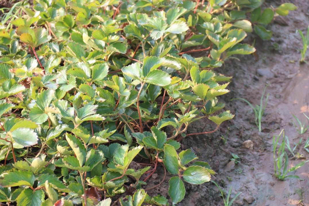 面對(duì)一大片的草莓種苗育苗地,小分隊(duì)隊(duì)員李紅偉問(wèn):“一行草莓苗最佳的育苗株距是多少呢?”,育苗基地負(fù)責(zé)人張躍峰解答道:“基地設(shè)定的種植標(biāo)準(zhǔn)是株間相隔35公分,相隔太遠(yuǎn)土地利用率低,太近株間生長(zhǎng)會(huì)受到影響。”